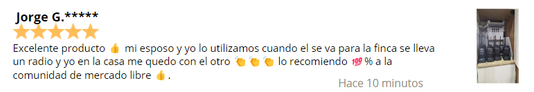 Excelente producto 👍 mi esposo y yo lo utilizamos cuando el se va para la finca se lleva un radio y yo en la casa me quedo con el otro 👏👏👏 lo recomiendo 💯% a la comunidad de mercado libre 👍.