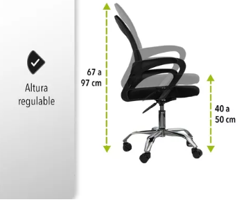- Mecanismo: Basculante 1 bloqueo a 90° en el espaldar y graduación de altura del asiento.