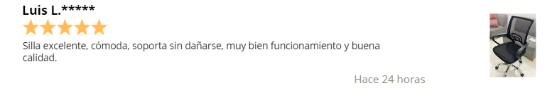 Silla excelente, cómoda, soporta sin dañarse, muy bien funcionamiento y buena calidad.