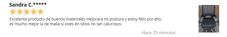 Excelente producto de buenos materiales mejorará mi postura y estoy feliz por ello, es mucho mejor la de malla si vives en sitios no tan calurosos.